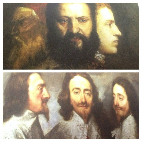 <사리분멸의 알레고리>에선 말하려는 상징이 숨겨져 있고 <찰스 1세 삼중 초상화>는 찰스 1세왕의 세 모습을 말 그대로 보여준다. 서로 다른 시간에 다른 방향을 응시한 찰스 1세를 그린 후 한 화면에 조합한 듯 입은 옷 색깔도 다른 점이 흥미롭다.