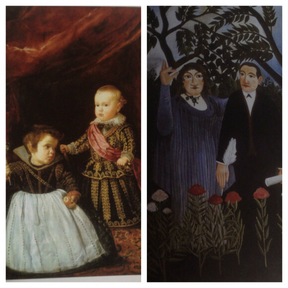 벨라스케스의 작품 <난쟁이와 함께 있는 발타사르 카를로스왕자>와 앙리 루소의 <시인에게 영감을 주는 뮤즈>는 모두 2인 초상화 형식인데 벨라스케스의 작품에선 왕자를 돋보이기 위해 난쟁이 하인을 루소 자신의 초상화를 돋보이기 위해 여신을 함께 등장시킨다.