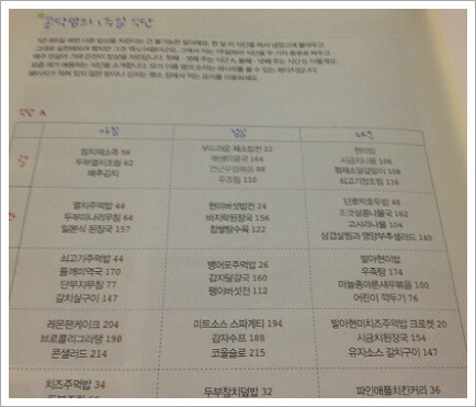 이 책의 백미는 뒷장에 붙어있는 1주일 식단표