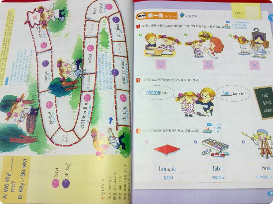 본문이 끝나면 놀이를 통해 중국어를 익히는 [함께 놀기]에선 고학년에게 맞게 학습적인 부분이 강화되어 여행일기,친구소개하기,카드쓰기등을 배울 수 있다.