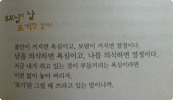 부모가 기다려주는 것과 포기가 어떻게 다른지를 혹 내가 아름이 부모같은 사람은 아닌지 반성하게 된다. 기회가 되면 아이와 부모가 함께 읽으면 많은 위로와 힘을 얻을 수 있지 않을까 생각되는 좋은 책을 만나서 너무 기뻣다.