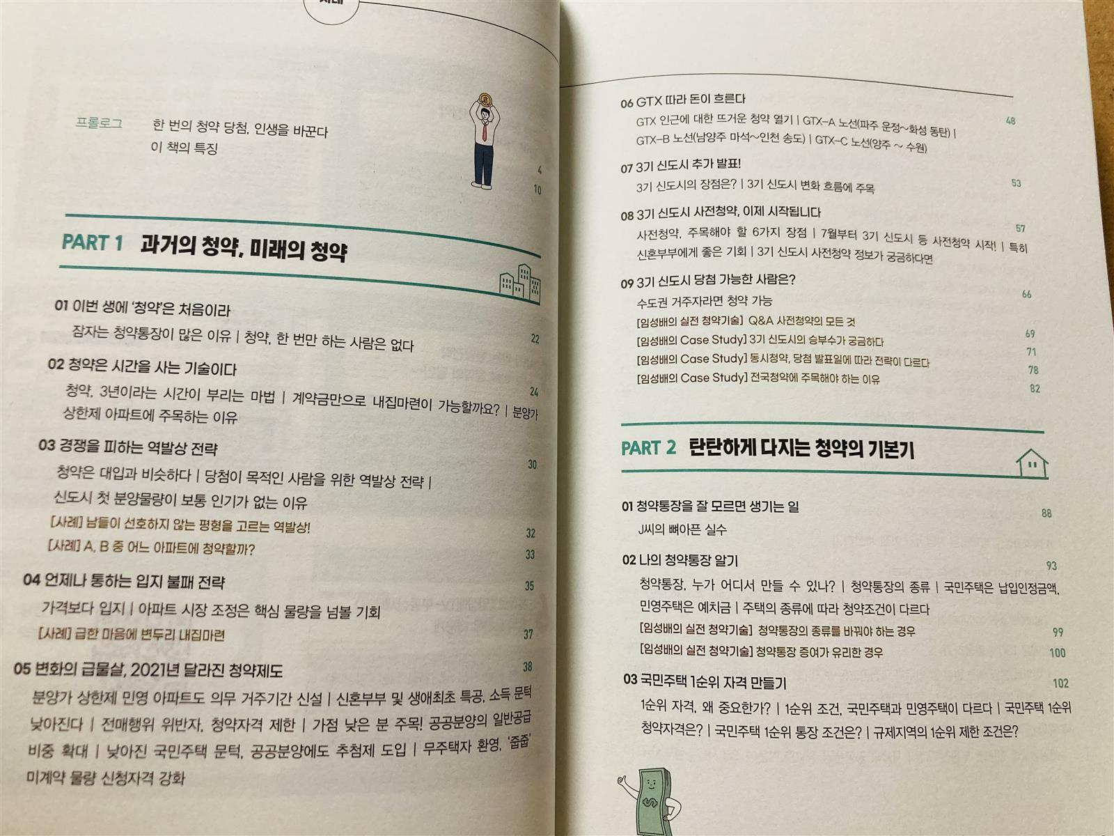 부끄러운 이야기지만 청약 통장은 있지만 이 통장이 하는 역할이 무엇이고 청약을 받기 위해 어떤 조건을 갖추어야 하는지 잘 몰랐다. 이 책에서 민영주택, 국민주택, 공공주택이 무엇인지, 청약가점(무주택 기간, 부양가족 수, 청약통장 가입기간)을 계산하는 방법을 자세히 설명하고 있기 때문에 청약에 도전해볼 생각이 있다면 청약 경쟁률과 나의 청약 가점 등을 알아보고 청약 1순위 조건을 갖추고 있는지 점검해 보는 것이 좋을 것 같다. 실제 입주자 모집 공고문을 통해 청약을 준비하는 과정을 자세히 설명한 부분이 있으며 특공, 청약의 과정을 상세히 설명해 놓았기 때문에 차근차근 따라 가기만 하면 된다.