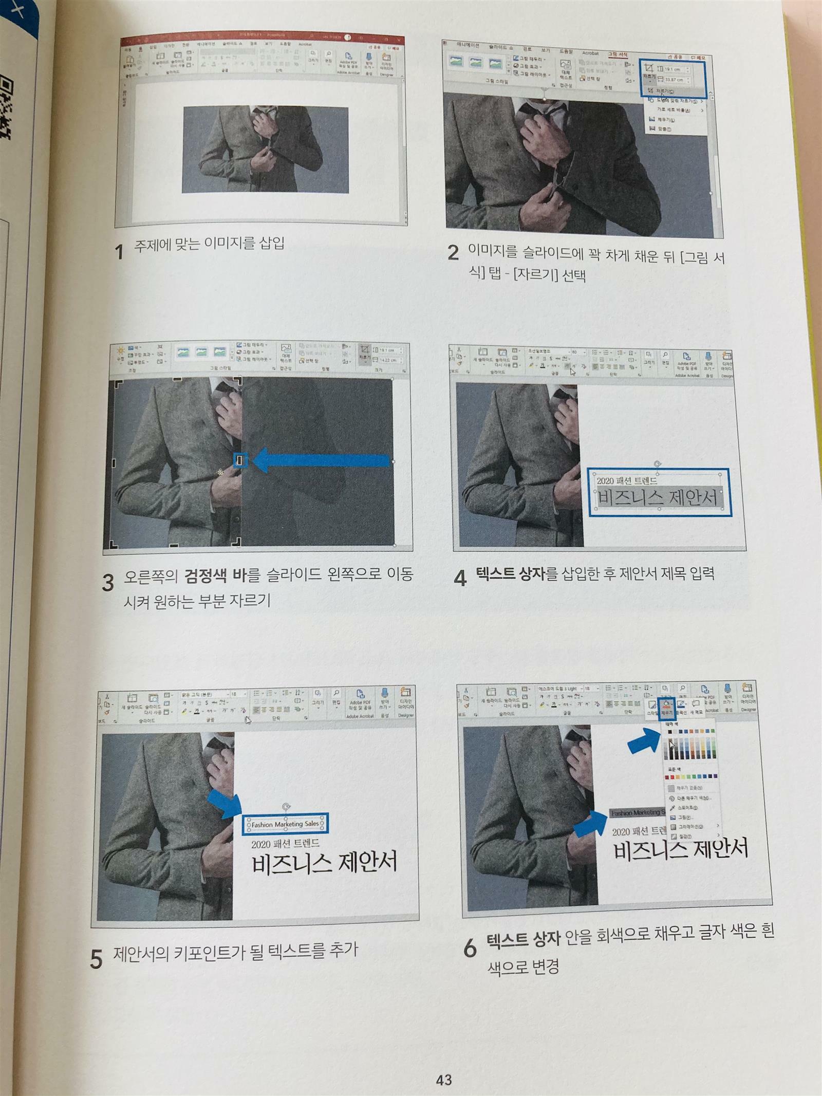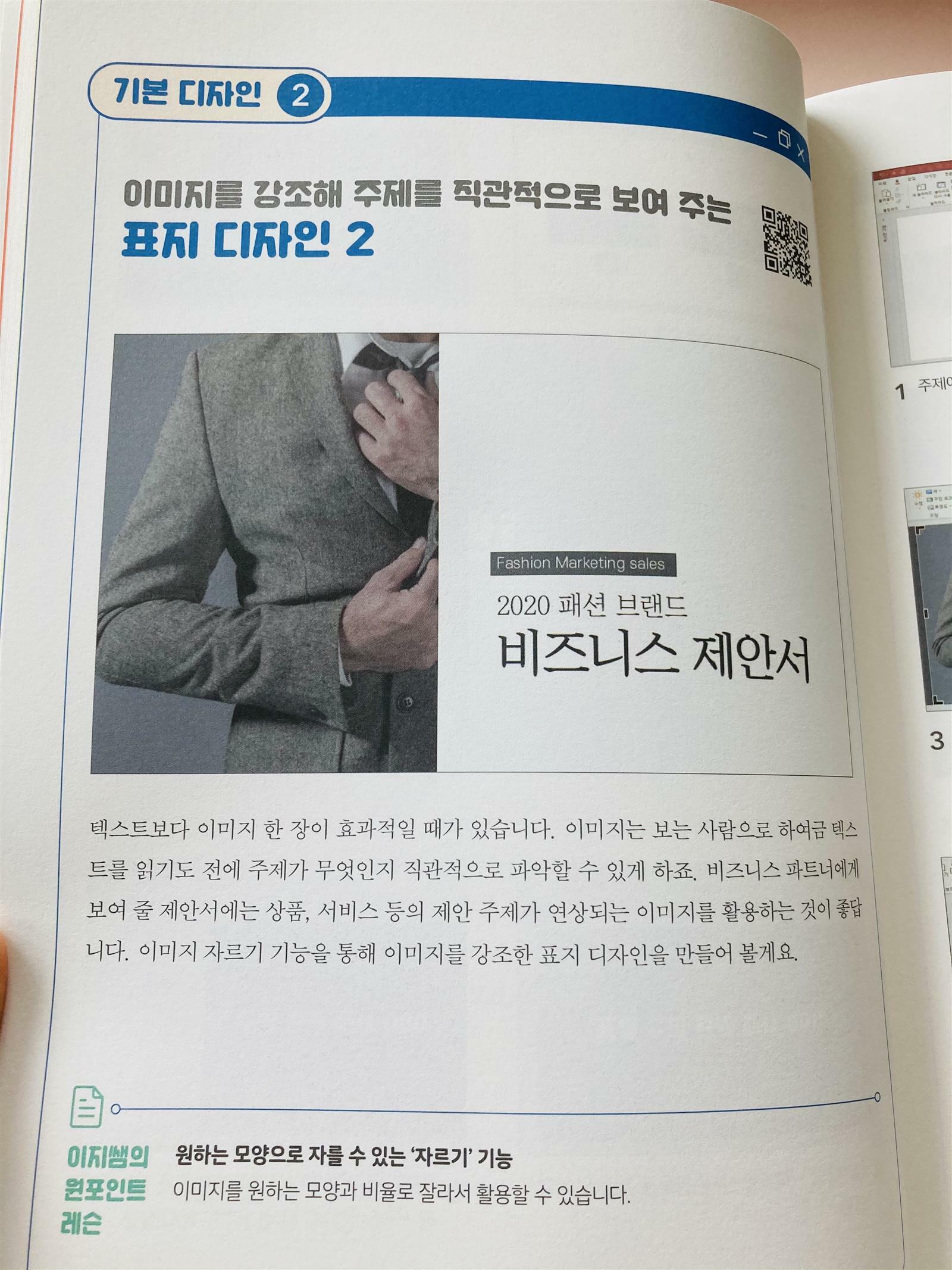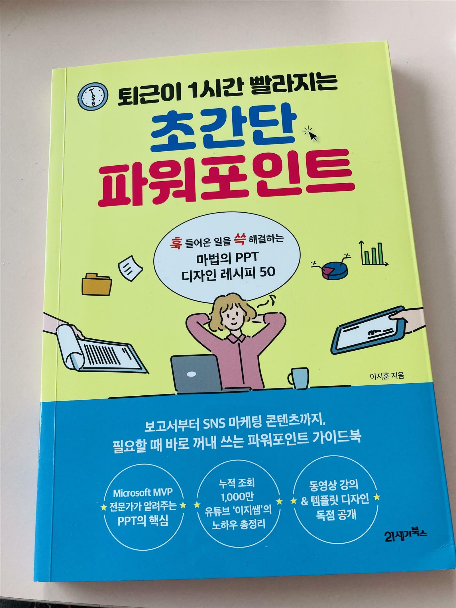 서평단에 선정되고 꽤 오랜 시간을 기다려 받은 책이다. 퇴근이 1시간 빨라지는 파워포인트의 꿀팁을 가득 담은 이번 책. 오래 기다려 받은 만큼 책이 알찼으면 했는데 핵심이 잘 정리되어 있고 실전에 바로 사용할 수 있도록 방법이 명료히 정리되어 있는 점이 좋았다. 곧 복직을 앞두고 있다. 컴퓨터와 가까운 사람이 아니지만 어쨌든 업무를 하려면 파워포인트나 엑셀과 친해져야 한다. 복직 전 준비를 이 책으로 해보기로 한다. 이 책은 이런 분들을 위한 책이라고 쓰여 있다. 파워포인트를 열었는데 어디서부터 시작할지 모르겠다. 슬라이드에 텍스트를 어떻게 배치할지 늘 고민이다. 있어보이는 PPT를 만들고 싶은데 디자인 감각이 없다. SNS마케팅 콘텐츠를 만들어야 하는 사람 보고서를 끝내니 제안서를 만들어야 하는 슬픈 사연을 가진 사람 파워포인트를 사용해야 하는 다양한 사연을 가진 사람들이 가지고 있으면 좋은 책이다. 항상 파워포인트를 만들어야 할 때가 되면 좀 더 깔끔하고 선명하게 보이는 PPT를 찾아 웹서핑을 하곤했다. 하지만 괜찮아 보이는 PPT는 항상 유료결제를 해야했고 적당한 선에 타협하여 PPT를 제출하곤 했다. 하지만 이 책에 나오는 6단계 레시피(간략해서 정말 너무 좋다!)에 따라 제작하면 내가 원하는 디자인을 만들 수 있다. 그리고 QR코드만 찍으면 동영상 강의까지 시청할 수 있다. 꿀팁도 책 곳곳에 숨어있기 때문에 큰 어려움이 없이 내가 만들고 싶은 PPT를 만들 수 있다. 내가 가장 큰 도움을 받은 부분은 파워포인트의 기본적인 디자인을 만드는 부분인 Part2부분이었다. 표지, 목차, 간지, 본문까지 이제 웹서핑없이 내가 만들고 싶은 PPT를 만들 수 있다. 표지 디자인의 경우 내가 원하는 이미지만 잘 찾아내고 이미지에 맞는 텍스트를 추가하고 색 배합만 잘 한다면 근사한 표지가 완성된다. 그리고 p132에 보면 완성도를 더해줄 수 있는 사이트까지 알려주어 짧은 영상 및 다양한 색상 활용, 글꼴 다운 등 여러 도움을 받을 수 있었다. 요즘에 인스타나 유투브에 들어가 보면 정말 눈에 확 띄는 로고를 메인으로 볼 수 있다. 이런 로고는 금손들만 할 수 있는 거겠지하고 생각했는데 이 책을 보면 나도 충분히 만들 수 있겠구나하는 생각도 들었다. 이 외에 글꼴 선택를 할 때 도움이 되는 글꼴 활용 팁도 p156에 나와 있다. 사전처럼 필요할 때 바로 찾아 보고 파워포인트를 제작할 수 있는 꿀팁이 녹아 있는 오늘의 책. 파워포인트 제작이 힘든 분들에게 강력 추천한다.