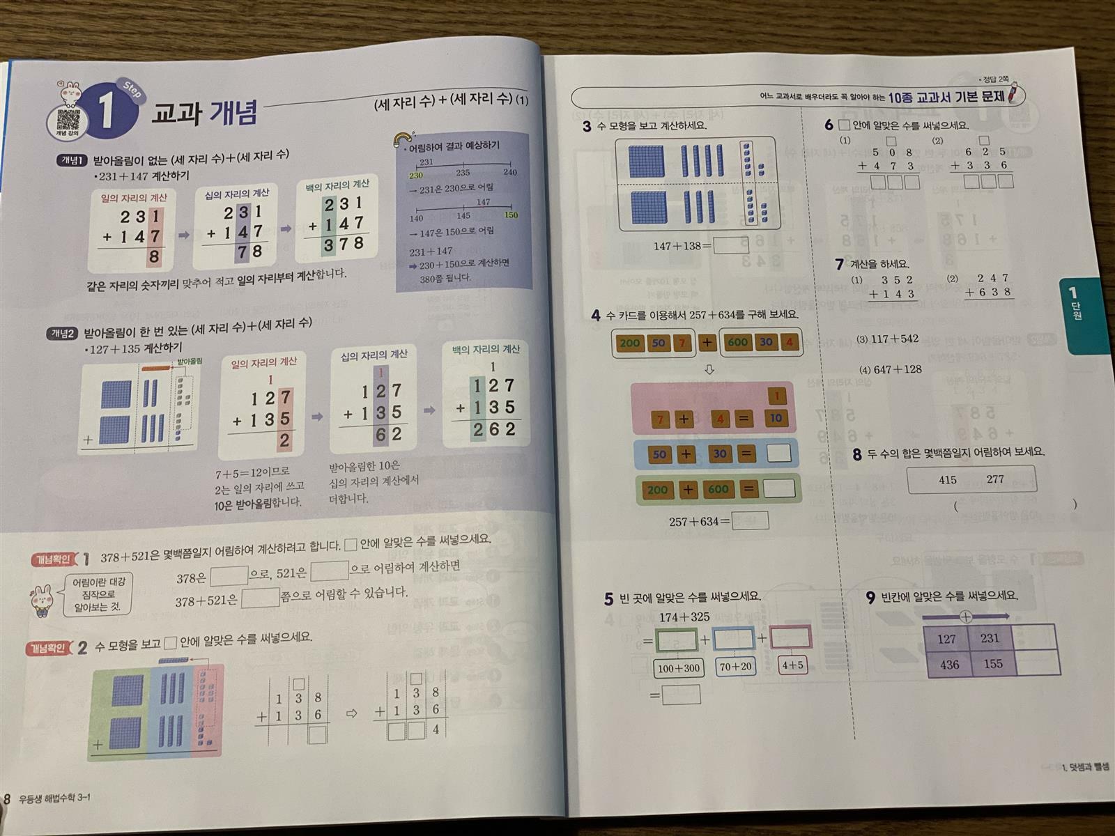 이번 단원에서는 세 자리수 + 세 자리수를 배워요.