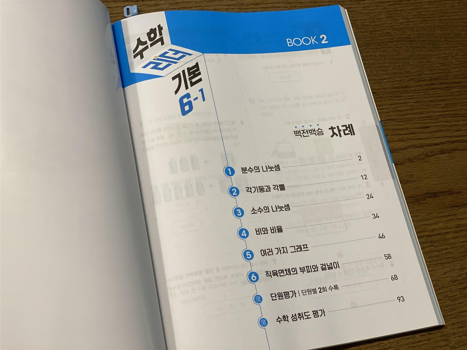 요즘 아이가 열심히 공부하고 있는 수학문제집, 수학리더 초등수학 6학년 1학기에요.