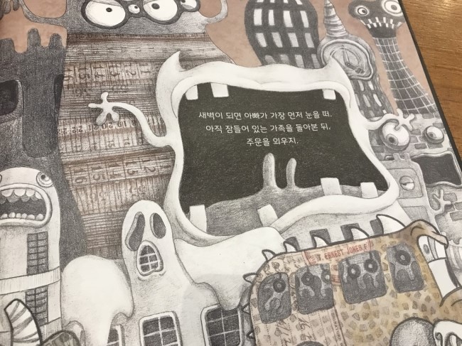새벽이 되면 아빠는 가족보다 일찍 일어나 괴물들과 싸우러 나간다.