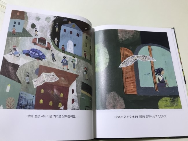주인공 작은 신문은 바람에 날려 한장씩 흩어지고,