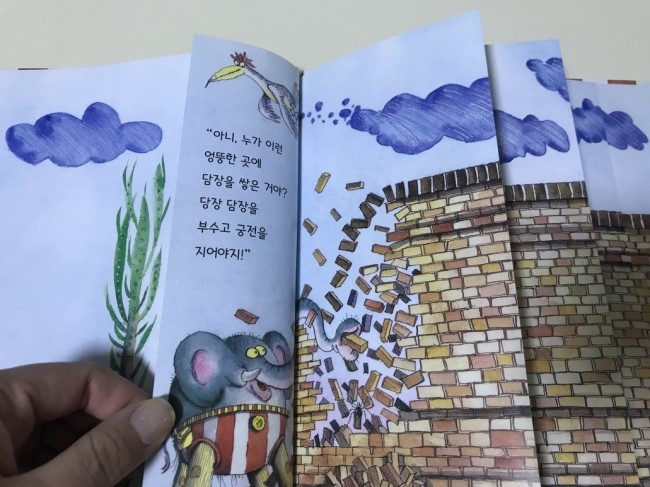 책이 분할되어 책장을 넘길때마다 크기가 다르다.