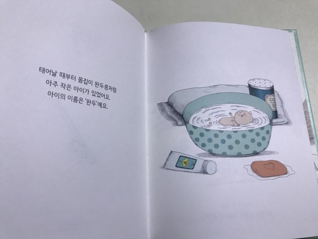 꼼짝 않고 누워 있어야 하니 아프면 안된다고 하는 주인공 남자아이
