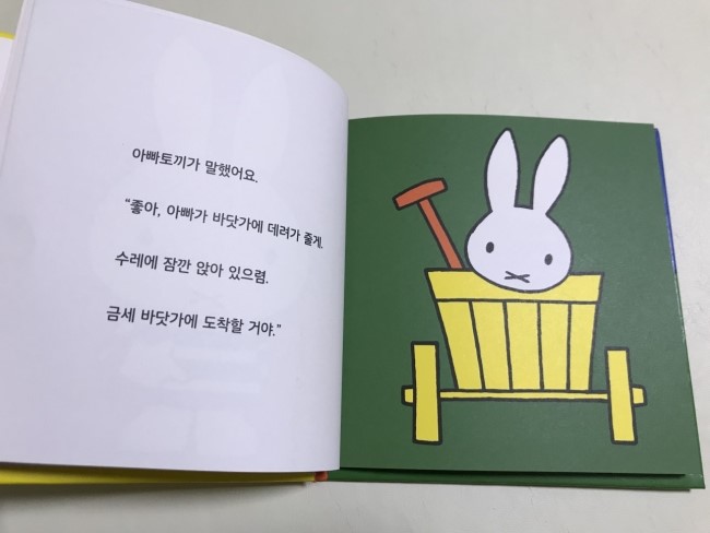 아빠토끼와 미피는 바닷가에 가기로 한다.