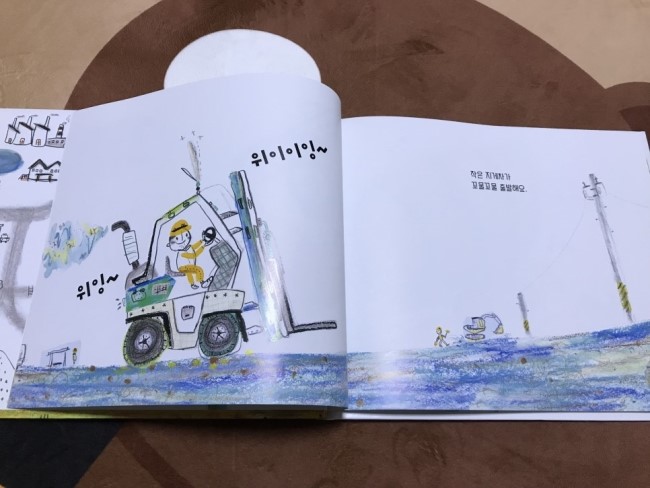 한 페이지마다 중장비 차들의 그림들이 등장하고
