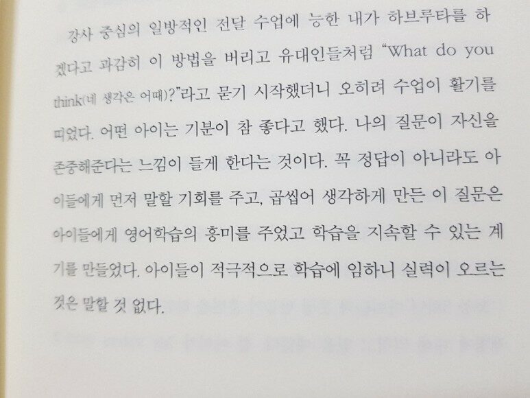 네모 반듯한 책상에 나란히 줄 맞춰서 앉아 선생님께서 칠판에 작성하며 알려주신 정보를 이유도 모른채 암기 형식으로 주입하는 우리네와 자신의 의견을 피력하며 상대방과 토론을 하며 체화하는 그들의 방식은 결과로서 많이 차이가 날 수 밖에 없는 것이다.