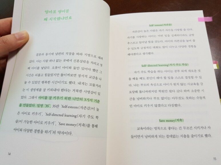 저자는 엄마표 영어를 시작한 이유가 그녀의 이 세가지 기준을 위해서라고 말한다.