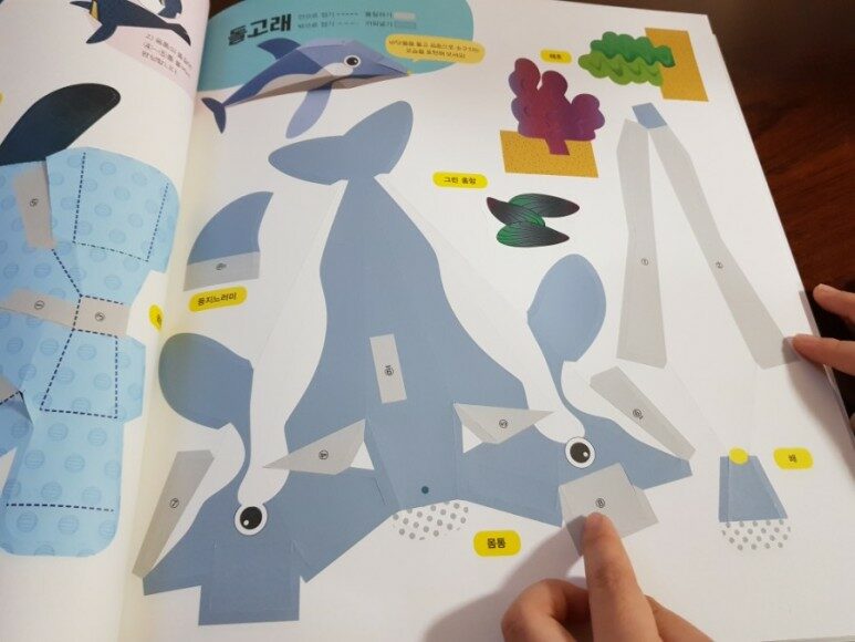 돌고래 도안 옆에 있던 해초는 3세 따님의 작품!