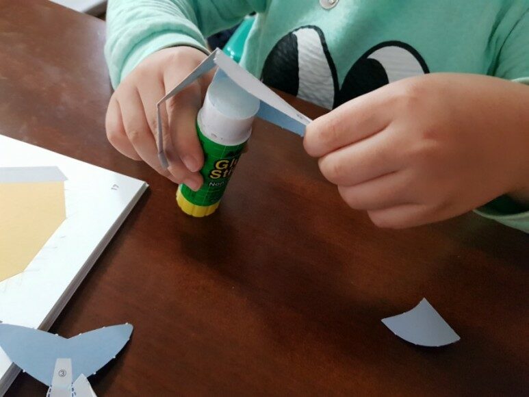 미리 접기선에 되어있는 자국을 따라 접은 이후에 풀칠을 해야 하는데 아직 숫자를 몰라...안타깝...