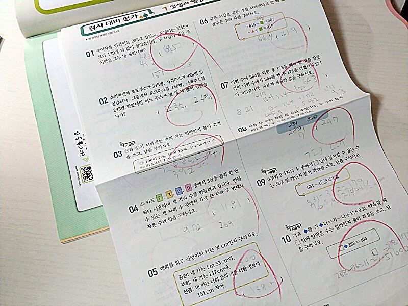 엄마는 채점시간을 가집니다.