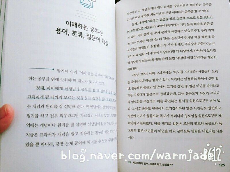 엄마가 좀 게을러지고, 적절하게 간섭해야 아이의 역량이 자란다. (p.12) 생전 듣지도 보지도 못한 병이 세상에 등장한 덕분에 세상이 확 바뀌어버렸다. 예전같으면 영화관이나 카페를 가며 데이트를 하던 커플들도 갈 곳을 잃었으며, 학생들은 가는 것이 너무도 당연했던 학교를 단계의 숫자가 올라가면 못가게 되는 일이 발생했다. 이로인해 사람들이 각자의 집에서 있는 시간이 늘어났고, 학생들은 도서관도 학원도 학교도 잘 가지 못해서 정규 교육과정을 어찌 마쳐야 할 지 우왕좌왕하고 있다. 2020년에 수능을 친 고3들이야 말로 인간 승리를 보여준 아이들인지도 모르겠다는 생각이 들었다. 아이들이 어떻게 공부를 해야하는지 스카이 캐슬 쓰앵님의 모델인 진동섭 선생님이 쓰신 책 <코로나 시대의 공부법> 이 나왔다. 유튜브나 인스타를 활용해 공부하는 새로운 방식의 공부법부터 어찌하면 온라인 수업에 집중할 수 있는지 자세히 나와있는 <코로나 시대의 공부법>. 어떤 직업을 가지든 독서와 공부는 필요하다는 진선생님의 말씀에 동감한다. 30년 넘게 하고 있지만 혼자 계획해서 하는 공부는 언제나 쉽지 않다. 어린 아이들은 오죽할까 싶다. 그래도 습관이 형성되기 쉬운 아이들에게 하루빨리 온라인 수업에 맞는 학습법을 가르쳐주면 도움될 것이다. 엄마와 아빠는 텔레비전이나 유튜브를 보고 있으면서 아이에게는 책을 읽으라고 하면 아이는 당연히 책을 읽지 않는다. 부모가 롤모델이 되어야 아이가 따라한다. (p.98) <코로나 시대의 공부법> 은 현재 아이들의 교육에 고민이 많은 부모님들에게 추천하고 싶다. 자녀의 연령에 따라 집중해야 할 포인트를 알려준다. 초등학교 고학년 아이들은 학습습관을 잡는데 주력해야한다는 것이 그 중 하나이다. 앞으로의 세대들에게는 문해력을 넘어 디지털 리터러시가 꼭 필요하다는 점도 결혼근처도 못가본 싱글이지만 배울 수 있었다. 새로운 학습의 시대가 시작된 지금 아이와 학습을 어떻게 진행해야 할지 앞이 막막하다 생각했던 대한민국의 학부모님께 <코로나 시대의 공부법>을 추천한다. 엄마가 아이에게 스스로 할 기회를 주고, 완수한 다음에는 칭찬을 해 주는 일이 매일 하나씩은 꼭 있어야 한다. (p.243) 본 리뷰는 출판사에서 도서만 무상제공받아 주관적으로 작성하였음을 알려드립니다.