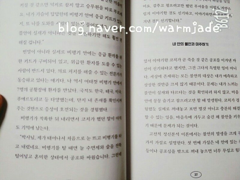 살면서 불안함을 느껴본 적 있는가? 올해는 티비를 켜면 연일 나오는 코로나 뉴스로 불안함이 일상이 되어버린 것 같다. 어제도 코로나 뉴스를 보다가 불안함이 과해져 신경이 날카로워진 탓에 아빠랑 별거 아닌 일로 언성이 높아지는 일도 있었다. 다 알아야 하는 사실이지만 어떨 때는 좀 과하다 싶기까지 하다. 나만 그렇게 느낀게 아닌지 올해는 정신 의학과에 방문하는 환자 수가 늘었다고 한다. 이 '불안' 이라는 감정이 인간의 보편적인 심리 상태라는 것을 알고 있는가. 인생 절반의 성공을 위해서는 실패한 경기를 어떻게 받아들이고, 다음 2~3경기를 이기기 위해 어떤 작전를 세우는가가 중요하다. (p.12) 한 때 좋아하던 책 <자존감 수업>의 윤홍균 선생님의 강력추천을 받은 책이라 <어른을 위한 단단한 마음 수업> 을 읽지 아니할 수가 없었다. 이 책은 불안 뿐만 아니라 마음을 힘들게 만드는 여러가지 이야기를 실어놓았다. 그 중에서 주체할 수 없이 화가 나는 경우를 읽으며 몇 년전 내 가 생각이 났다. 이유가 어디서 시작했는지 모르겠는데 혼자 스스로에게 화가 나있어서 그걸 엄마에게 내뱉고 있었다. 나도 살다가 그런적이 처음이라 그 일이 있고난 후에 좀 당황했다.'화'라는 감정에 대해 적극적이고 긍정적인 방식으로 접근하면, 마음의 여유를 찾고 감정을 추스리는데 도움이 될 것이라는(p.201) 말처럼 나도 그렇게 극복했다. 일시적이었지만 강렬한 경험이라 아직 기억이 난다. 가끔 우리는 너무나 많은 사회적 관계 때문에 생긴 본질의 문제에 파묻혀 나 자신의 존재감을 잃을 때가 있다. 이틀이든 사흘이든 잠시만 본질의 문제에서 떠나 있어보자. (p.193) <불안한 것이 당연합니다> 는 코로나 블루로 인해 마음이 불안한 독자들에게 추천하고 싶다. 지치고 쉬고 싶은 당신의 마음이 이 책을 읽다보면 이렇게 저렇게 위로해 줄 수 있는 책이라고 생각한다. 불안감을 느끼는 사람들에게 과하게 무턱대고 자신감을 가지라는 책이 아니어서 좋았다. 지금 여기서 표정, 말, 감정을 일관되게 일치시키는 것이 불안을 몰아내고 인생을 즐기는 가장 바람직한 방법이다. 그것은 인생 최고의 순간을 오래도록 유지하는 비결이기도 하다는 것을 기억하자. (p.105) 본 리뷰는 출판사에서 도서만 무상제공 받아 주관적으로 작성하였음을 알려드립니다.