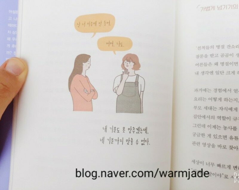 여전히 편안한 말투에 촌철살인 문장들과 그림을 보며 옛날 어리석었던 내 모습을 떠올리며 큭큭거리며 읽었다. 그렇게 특별한 문장들이 아니었는데도 내가 눈물을 글썽거렸던 것은 아마도 나의 경험들 때문이었을까. 하고 싶은 말을 이토록 찰지게 표현하는 능력을 가졌음에 작가님들이 부러웠다. 나도 딱 이 느낌 표현하고 싶었다구요.