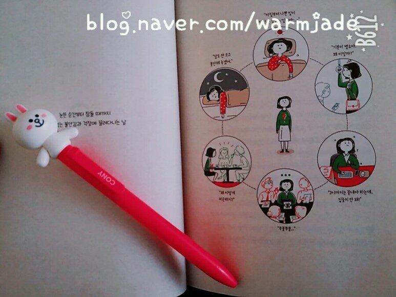 간단해서 아무것도 아닌 것처럼 보일 수도 있지만 일단 해보면 불안감을 느끼는 그 순간의 감정을 다스리는데 효과적이라는 것을 알게될 것이다."(p.42)