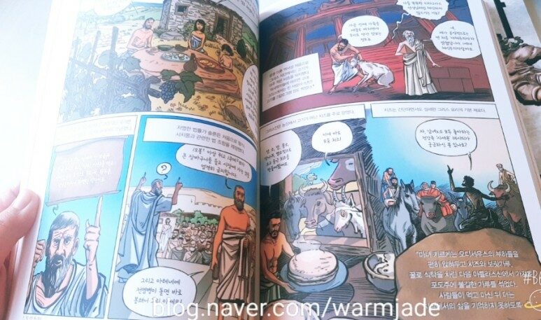 한빛비즈 교양툰 시리즈에서 또 한번 일을 냈다. 바로 바로 <만화로 배우는 요리의 역사> 를 출간해 준 것이다. 메소포타미아 문명에서는 일찌감치 맥주와 빵을 만들어 먹었다는 사실도 알 수 있었다. 과일은 많았지만 갓 짜낸 신선한 주스는 상류층만 누릴 수 있는 특권이었다고 하니, 지금 내 손에 든 주스에 감사하다. 아시아에서는 중국이 일찌감치 미식문화가 발달했다고 한다. 같은 시기에 우리나라도 요리가 있었을텐데, 프랑스 작가에 의해 적힌 책이라 강대국 위주의 포커스에 약간 아쉬웠다.