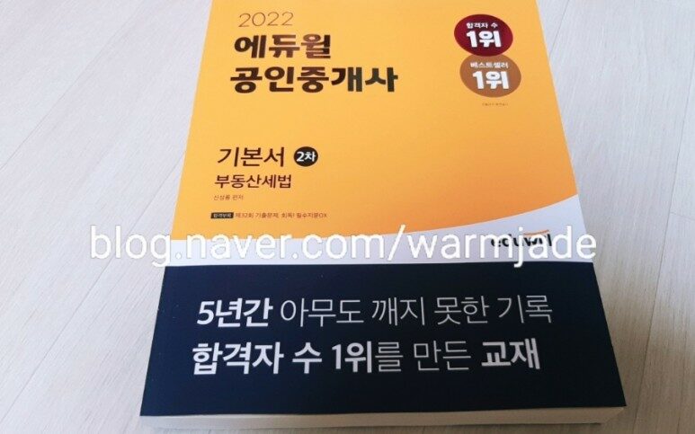 드디어 33회 공인중개사 시험을 준비하는 해가 밝았다. 지인은 1차 합격의 기쁨을 뒤로한 채 올해는 2차를 준비해야 한다며 울상이었다. 그녀와 같은 수험생들에게 추천하고 싶은 #공인중개사2차기본서 부동산세법 책이 있다. 바로 에듀윌에서 나온 2022 부동산세법 기본서가 바로 그것이다.