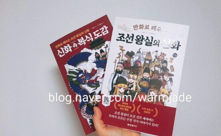 <만화로 배우는 조선 왕실의 신화> 는 우용곡 작가님이 글과 그림을 썼다. 조선 왕실은 우리가 알다시피 유교. 유교의 영향을 많이 받아 제사를 지내었다. 그 모신 신이 우리나라 신만 있는 줄 알았는데 이 책을 읽다보니 베트남, 중국, 일본에 까지 아주 다양한 신이 있었다. 분명 내용은 신화에 대한 이야기라 지겨울 것 같았는데 , 만화가 웹툰에서 많이 보던 익숙한 예쁜 그림이라 거부감이 없었다. 초판 한정 부록에 신화속 복식도감까지 보는 재미가 쏠쏠하다.