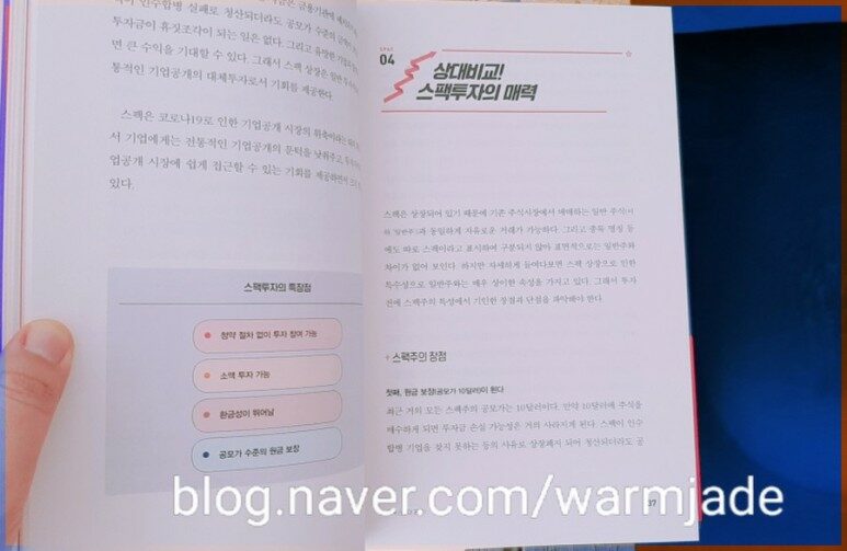 미국 주식에 빠져서 한창 미국 주식 책만 읽었던 때가 있었다. <미국주식 스팩투자법> 은 미국 주식 중에도 스팩주에 투자하면 좋다는 책이라고 한다. 스팩주는 국내 공모주랑 비슷한 것이었다. 나도 공모주 투자에 한번 참여한 적이 있는데, 내가 투자한 원금보다 손해를 보지 않았다는 점에서 매력을 느꼈다. 미국 주식의 스팩주라는 것이 이 공모주처럼 하락할 수 없고, 올라갈 기회는 무궁무진하다니!