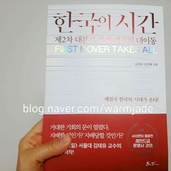 4차산업 혁명에 대해 불안하거나 걱정하는 독자님들에게 <한국의 시간> 을 권하고 싶다. 나같은 국민은 책을 백날 읽어봐야 무슨 변화를 만들수 있을까, 오히려 이 책은 한국의 고위층에서 읽어야 하는 것인가 하는 생각도 든다. 김태유 교수님의 의견처럼 ' 1차 산업혁명이 그랬듯 4차 산업혁명도 우리를 찾아오지 않을 것이다. 우리가 4차 산업혁명을 찾아 나서야 한다.(p.345)' 고 말하며 이 글을 마친다.