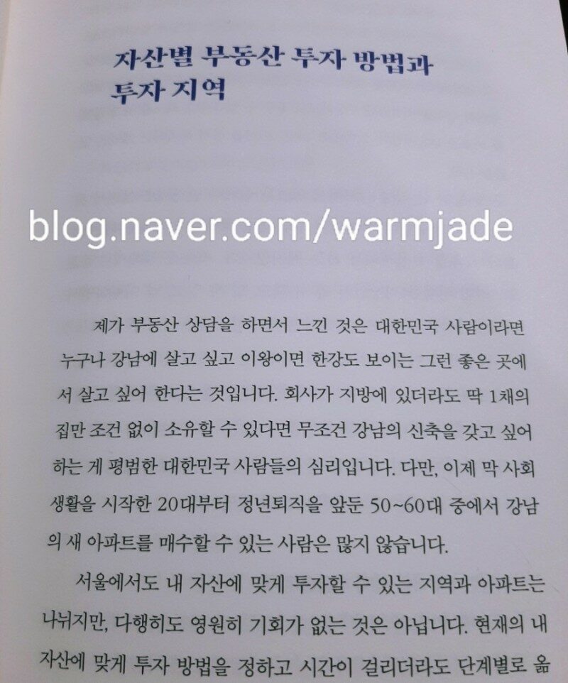 과연 여러분은 앞으로 집값이 떨어질 것이라고 생각하십니까? (p.25) 부동산에 관심이 생겨서 몇 년간 관찰해 본 결과 알게 된 점이 있다. 집은 그 동네에서 살아본 사람이 잘 안다는 것이다. <서울 아파트 황금 지도>의 저자 탑곰 님은 서울에 대치동,성수동, 회기동, 서초동, 상암동, 공덕동 등 서울 토박이셨다. 서울 토박이에 부동산에 관심이 특별한 분이시라니, 그런 분이 찍어주는 아파트는 어디일까 책을 읽기 전부터 궁금증이 모락모락 생겼다. <서울 아파트 황금 지도> 가 여타 다른 부동산 책들과 차별화 되서 괜찮다고 생각하는 점은 자산 가격별 전략을 짚어준다. 내가 1억 미만을 가지고 있다면 이렇게 해라. 이런건 다른 책에서 읽지 못했던 것이다. 게다가 서울의 구역별 괜찮은 아파트를 콕콕 말해준다는 점이 지방러나 서울을 잘 모르는 독자들이 읽기에 꽤 메리트로 다가왔다. 이것이 바로 저자인 탑곰님이 수년에 걸쳐서 연구해 온 비법을 알려주시는 것이다. 만원 좀 넘는 가격으로 이렇게 다른 사람이 연구한 것을 손쉽게 알게 된다는 점이 참 감사하면서도 그 수고를 알기에 미안함도 들었다. 특히 책의 초반부의 탑곰님의 앗싸라한 말투의 팩트를 읽으며 어딘가 모를 시원함도 느꼈다. 오직 아파트 가격 내리길 바라는 사람만이 아파트값이 떨어질 거라는 희망을 마치 사실처럼 믿을 뿐입니다. (p.26) 평생 지방러로 살아왔지만 서울 아파트에 관심이 높은 나같은 독자들을 위해서, 그리고 서울이나 경기도 등 근처에 살지만 서울 아파트를 잘 모르는 독자들을 위해 <서울 아파트 황금 지도> 를 추천하고 싶다. 지인들이 부동산 책을 읽는다고 한다면 추천해주고 싶은 좋은 책을 읽게 되어 기쁘다. 엄청 쉽게 적혀있어 부린이 친구들에게 추천해줘야겠다. 본 리뷰는 출판사에서 도서만 무상제공 받았지만 주관적으로 적었음을 알려드립니다.