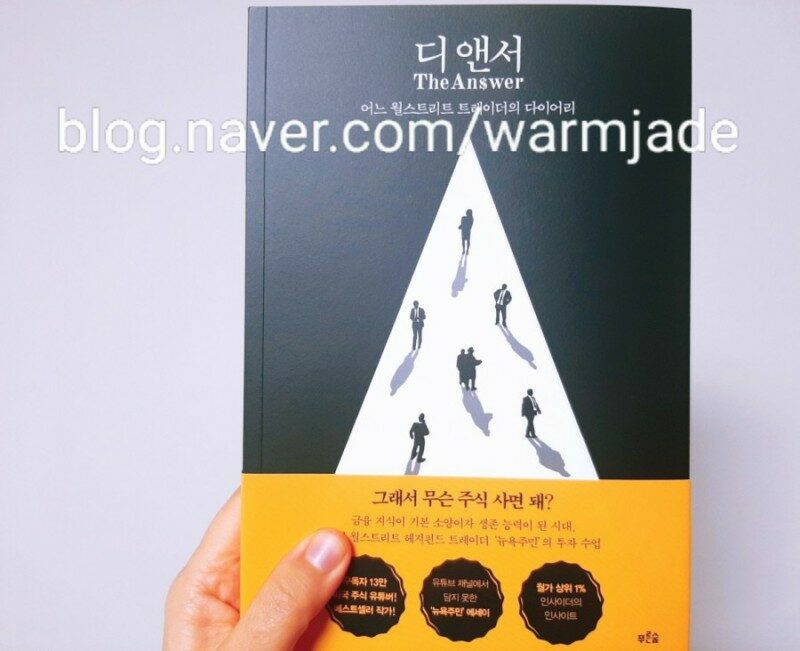 사실 나도 처음부터 주식에 관심이 있던 것은 아니었다. 동학개미운동 전에 주식을 살포시 접할 기회가 있었다. 그 때만 해도 코로나19도 발생하기 전이었고 주식도 2000 포인트 정도였고, 테슬라도 안비쌌다. 그 때 국내주식을 하지말고 테슬라를 샀어야했다. 지금은 천슬라라 테슬라를 살 수가 없다. 주식도 가지고 있었어야 했지만 손절했다. 주가가 내려가는 속도가 무슨 휴지조각이 될 것 같은 느낌이 들었기 때문이다. 내 돈을 주식에 날리고나서야 주식을 공부하게 되었다. 그러던 중 만난 것이 뉴욕주민 유튜버였다. 처음엔 뉴욕에 산다길래 호기심에 눌렀는데 보다보니 똑똑하고 중독성있는 내용이었다. 출판 되었다는 소식을 듣자마자 광클릭의 솜씨로 받은 <디 앤서>. 주식투자를 마치 마트에서 장을 보듯이 뭐 하나 무조건 오를 것 같은 종목을 고르는 일이라고 생각하는 사고 (p.10) 엄청 부끄러운 일이지만 나 또한 마트에 장보듯이 일주일도 안되는 짧은 시간에 많은 종목을 샀다.역시 뉴욕주민님은 보통 사람들의 행동을 현명하게 잘 보고 있다는 생각이 들었다. 남들보다 이른 나이에 치열하게 살아온 뉴욕주민. 이런 스트레스가 풍부한 환경을 정말 잘견뎌주어서 대단하다는 생각이 들었다. 책을 읽으며 생각했는데 무엇이든 유튜브를 보며 내가 상상한 것 이상이었다. 버블이 오면 누군가 그것에 대해 아무리 객관적인 지표를 들고서 경고해도 시장에서는 묵살당하기 마련이다. (p.36) <디 앤서> 는 뉴욕주민의 두 번째 책이다. 첫 책도 상당히 유익했는데, 이번 책은 월 스트리트 트레이더의 다이어리라 그런지 가독성이 좋다. 한국의 고등학교 교육과정까지 거치고 유학하여 월스트리트에 진출하는 것이 목표인 독자에게 추천하고 싶다. 뉴욕과 금융에 관심이 있는 서학개미 독자님들에게도 재미와 교육적인 내용을 주는 책이라 생각한다. <디 앤서> 를 읽는 동안 나는 잠시 뉴욕 월스트리트에서 일하는 사람이었다. 남들은 꿈만 꾸는 것을 매일 매일 살아내는 뉴욕주민, 한국에서 그녀를 응원해본다.