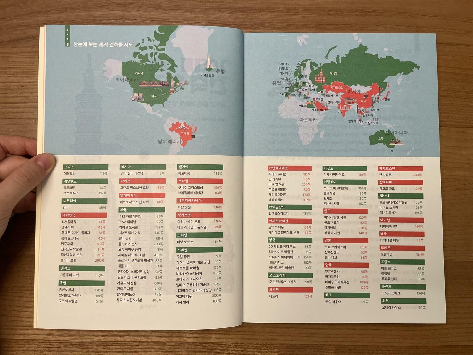 전 세계적으로 유명한 건축들이 나열되어있어 많은 전세계의 아름다운 건축을 한 장 한 장 넘기며 여행다녀오듯 간략하게나마 엿볼 수 있어 좋았다.