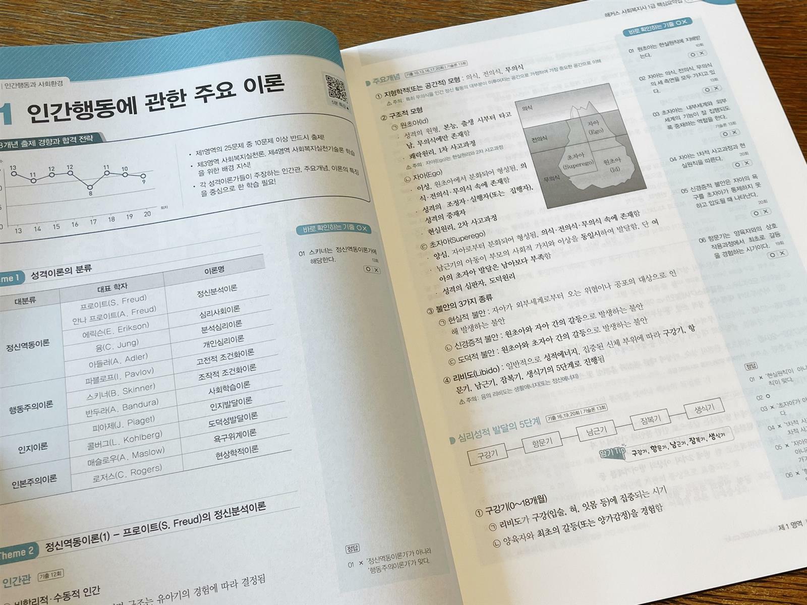 지인이 사회복지학과 박사과정에 다니고있는데, 강력하게 추천을 해주더라구요. 지인은 사회복지학과 학사 졸업시 1급을 받았다고하던데 요즘엔 졸업을 한다고 1급을 주지않고, 이렇게 시험을 보아 합격을 해야한다고 합니다. 저는 사회복지학 관련을 전공하지 않았기때문에 조금 더 요구되는 사항들이 있어요. 책을 탐구하기전에 사회복지사는 현재 3급은 폐지, 2급은 시험응시는 필요없고 학습을 이수하면 취득가능, 1급은 응시자격을 확인 후 도전해야 하더라구요. < 해커스 사회복지사 1급 핵심요약집 > 통합기본서로 개념을 완성하고 > 회차별 기출출이로 개념을 정복한 후 > 현재 소개하는 책인 압축 요약집으로 최종 실전 대비를 할 수 있습니다. 저는 학습을 할 때 효율적인 방법을 위해 핵심요약집을 보는 것을 선호했습니다. (물론 바로 최종요약집을 보면 안됩니다! 기본적인 개념들을 다 아는 상태에서 효과적인 암기와 문제풀이스킬을 극대화하기 위해 선택하곤합니다. 개인적인 공부법에 따라 선택하시길 바랍니다.) 핵심이론만 압축한 책을 보면 자주 나오는 기출문제와 유형들을 파악할 수 있고, 실전감각을 기를 수 있어요. 아는 개념도 문제로 나오면 헷갈려서 오답을 택하는 경험 다들 있으시죠? 각 챕터의 시작점 우측상단에는 QR코드를 통해 5분특강을 볼 수 있구요, 최근 출제경향과 합격 전략 & 암기Tip이 소개되는 점이 마치 1:1과외를 받는 기분을 들게합니다. 오른페이지 우측에 바로 확인하는 기출OX문제는 개념을 헷갈리지않고 잘 숙지하게 하는데 도움됩니다. 또한 4,6주 학습플랜이 있어서 진도율을 눈으로 확인할 수 있습니다. 시험일정과 원서접수방법 안내, 시험기간도 상세히 소개되어있어서 별도로 인터넷 검색을 하지 않아도 매번 책을 펼칠 때 시험응시일과 진도율을 체크하면서 마음가짐을 다질 수 있는 장점이 있습니다. -출판사로부터 책을 제공받았습니다.