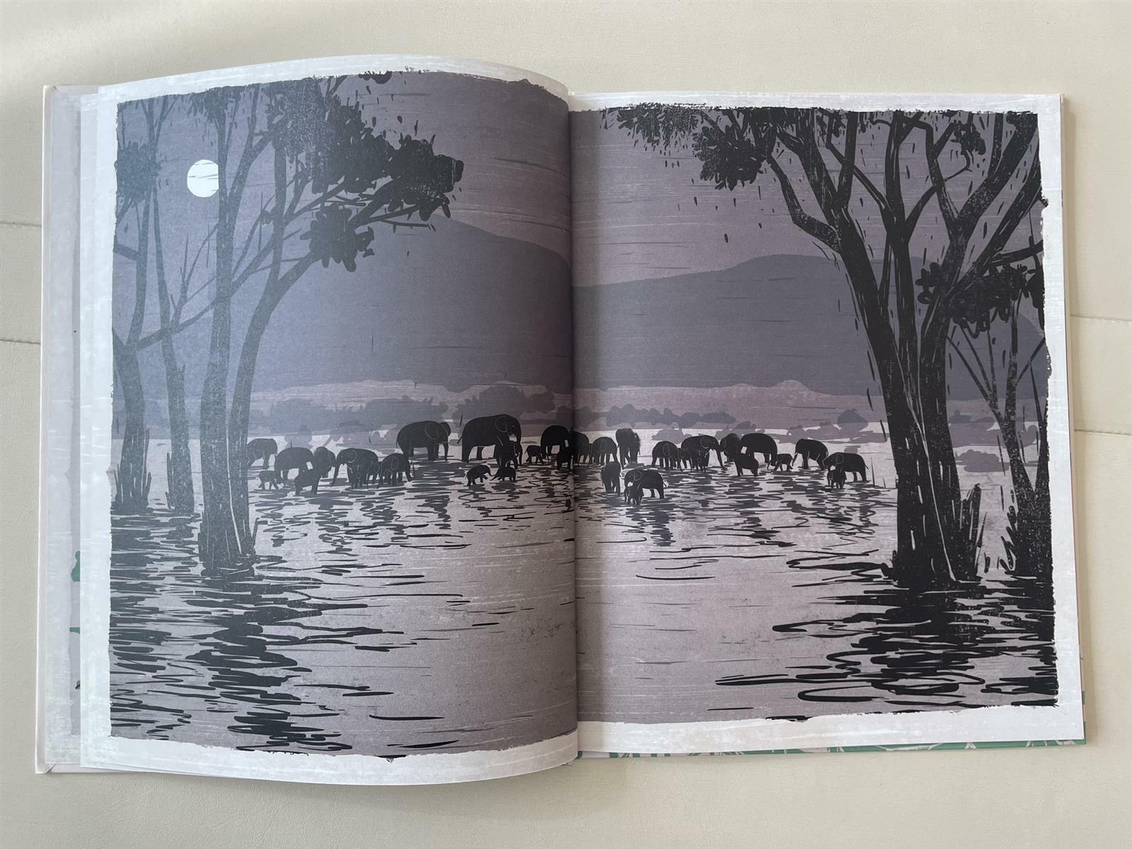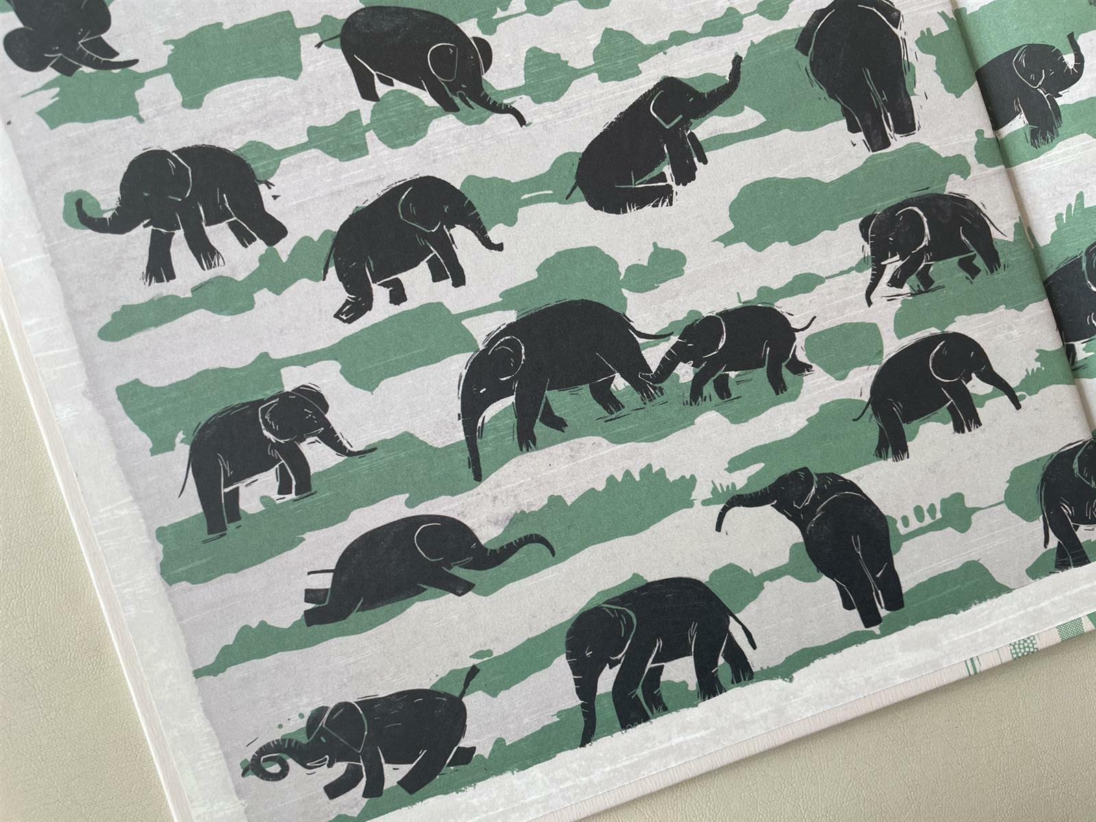 일러스트가 멋스러워 아이는 물론 어른도 보기에 좋은 코끼리 그림책입니다. 저는 개인적으로 동물 중 코끼리와 펭귄을 가장 좋아합니다. 코끼리는 굉장히 똑똑하고 사회성이 발달한 동물이죠. 하마나 고래처럼 모계 중심의 사회가 발달한 코끼리여서인지 코끼리 사진이나 그림을 보면 엄마코끼리와 아기코끼리가 함께 하는 모습을 쉽게 볼 수 있는 것 같아요. 그리고 무리생활을 하며 같이 돕고 교감하는 모습도 자주 볼 수 있구요. 이러한 점들이 삽화에 녹아있어 보는동안 코끼리의 습성을 잘 표현하셨다고 생각들었습니다. 일러스트가 정말 멋지죠? 묵화 느낌도 납니다. 붓놀림과 절제미 여백미와 고요함 속 주는 정적인 아름다움이 묻어납니다. 코끼리 역시 이 그림처럼 과묵하면서 웅장한 아름다움이 있는 동물같습니다. 장난도치고 싸움도 하는 동물이지만 기본적으로 코끼리 하면 떠오르는 느낌들을 그림에 잘 담았습니다. 글귀는 많지 않아 아이와 읽을 때 글도 읽어주고 삽화의 배경과 코끼리를 언급하고 질문하며 읽는 재미가 있습니다. 코끼리의 주름 움직임 몸짓들이 귀엽게 표현되어있습니다. 내리막에서 넘어지는 모습에서 웃음이 나기도 했습니다. 큰 귀와 긴 코 묵직한 다리로 이동하는 모습 씨름하는 모습들 그리고 몸에 맞지않게 작고 앙증맞은 꼬리까지. 다른 동물 시리즈도 출간되면 좋겠다는 생각이 절로 듭니다. 마지막 장 양장본 표지 안쪽커버에는 서커스코끼리가 나와있어요. 슬픕니다. 여긴 아이한테 보여주지 않았어요. 동시에 작가님이 동물을 그릴 때 단순히 책의 주인공이 아닌 이 동물을 진심으로 사랑하고 그들의 사랑스러운 모습과 동시에 동물의 자유를 구속하는 인간의 잔인함을 마지막에 담았구나 하는걸 알 수 있었습니다.