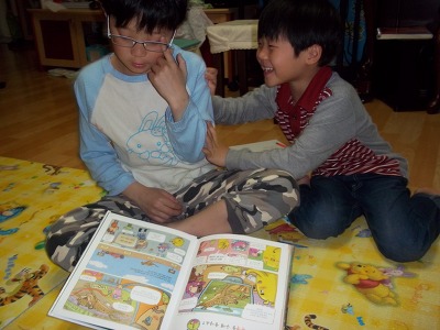 저희집 첫째와 둘째 아들들~~아직 동화 못읽어 봤다고 하는 동생에게 책좀 같이