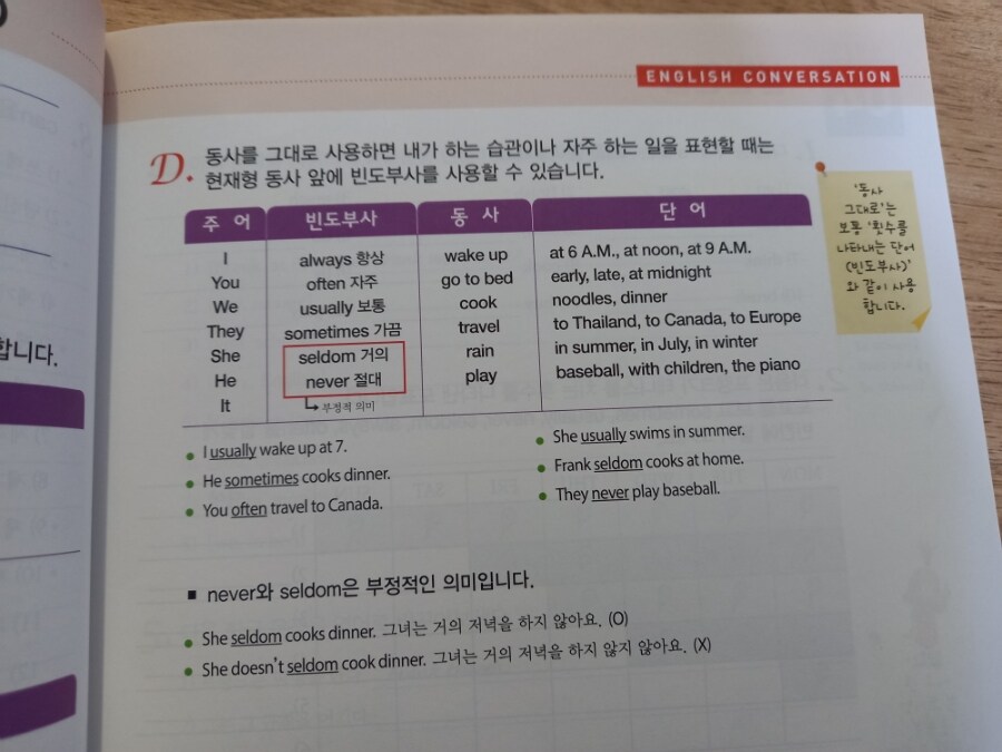 자주 하는 일을 표현할 때는 현재형 동사 앞에 빈도부사를 사용할 수 있어요