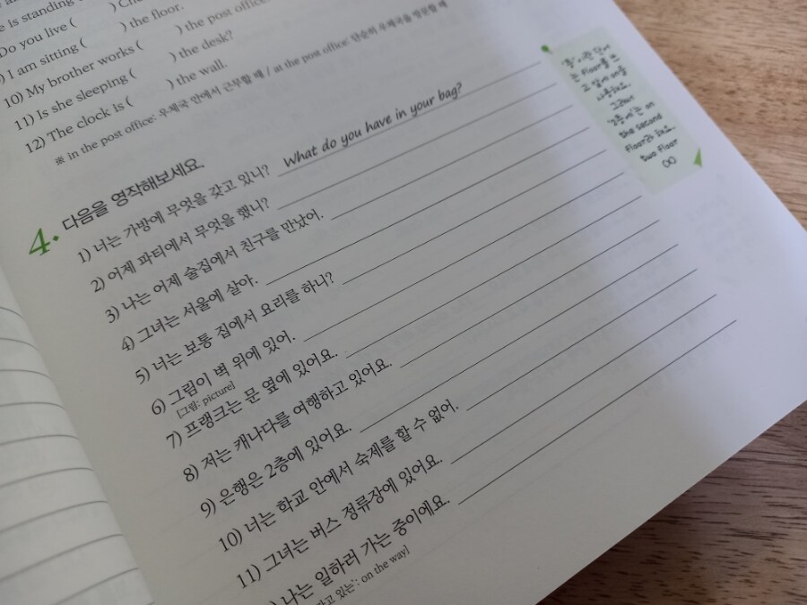 영작을 통해서 영어와 한국어의 차이점을 생각하고 직접 한국어를 영어로 바꾸면서 영작을 하다