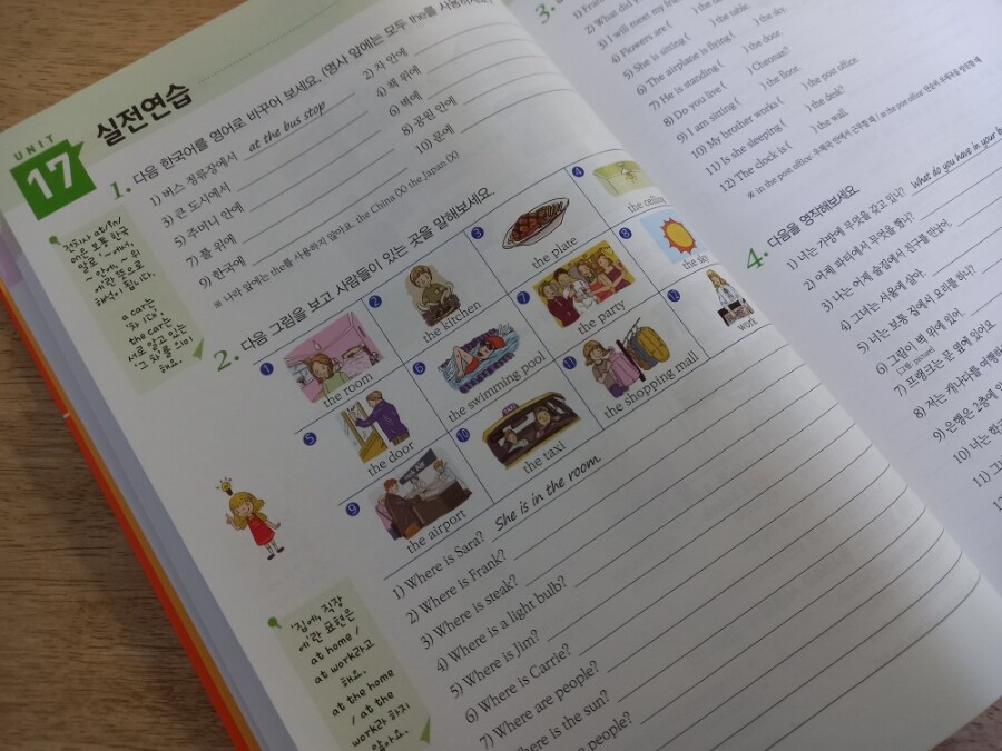 문법 문제를 비롯한 단어 넣기, 그림을 통한 대화 넣기, 직접 대화하기 등과 같은 여러 가지 연습