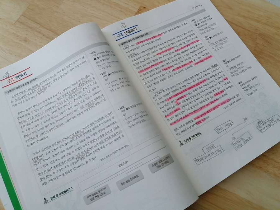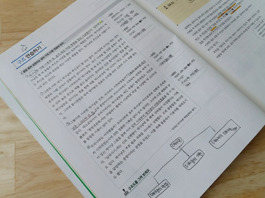 밑줄을 그으며 지문을 읽으니 문단 요약도 쉬워지고 구조도 그리기도 어렵지 않아요