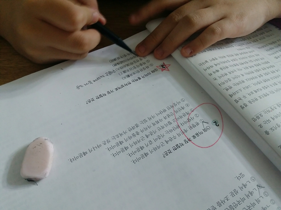 한시간이 넘어가도 1번 답을 찾지 못하는 모습을 보고 책을 살포시 덮었어요