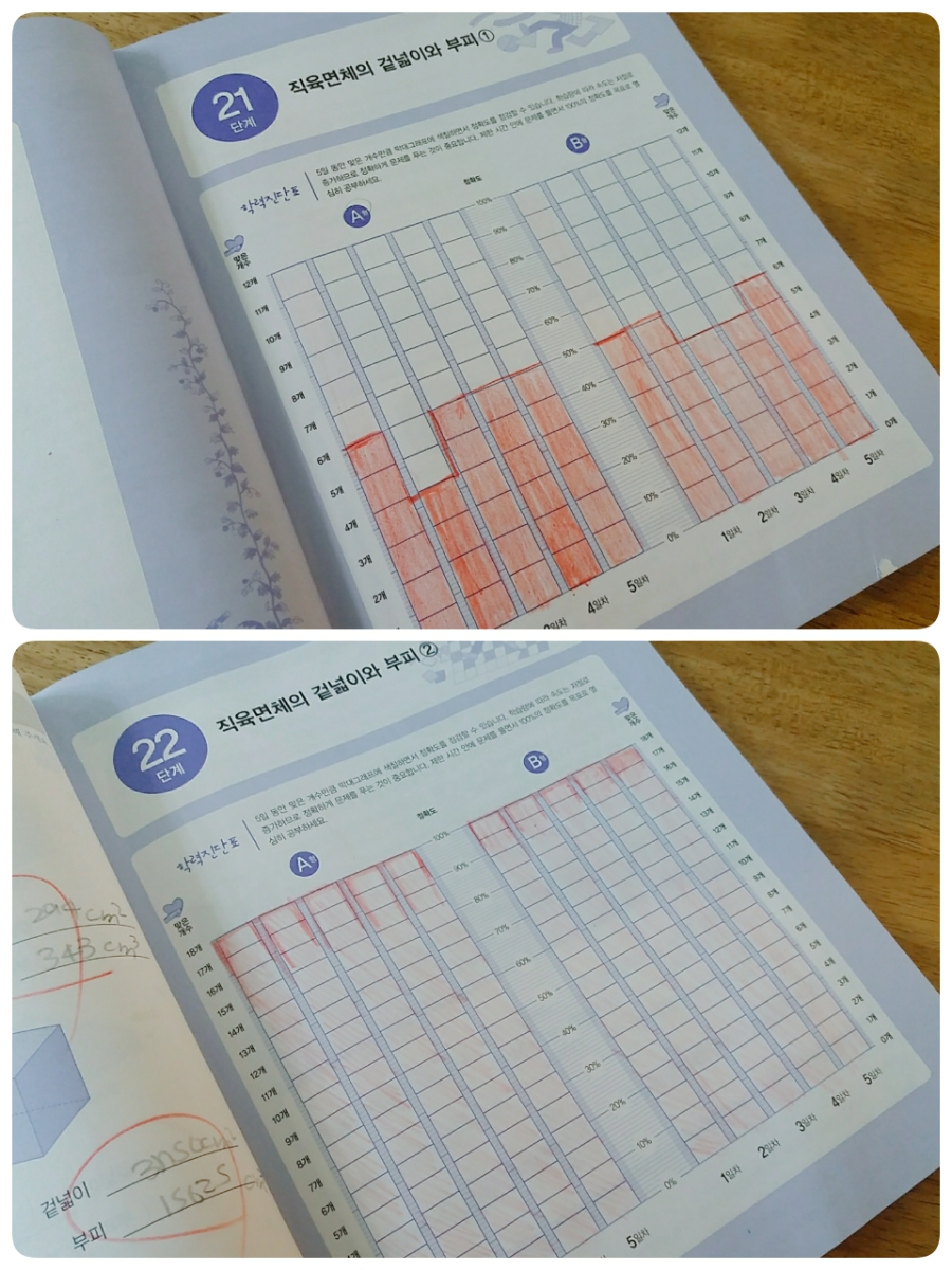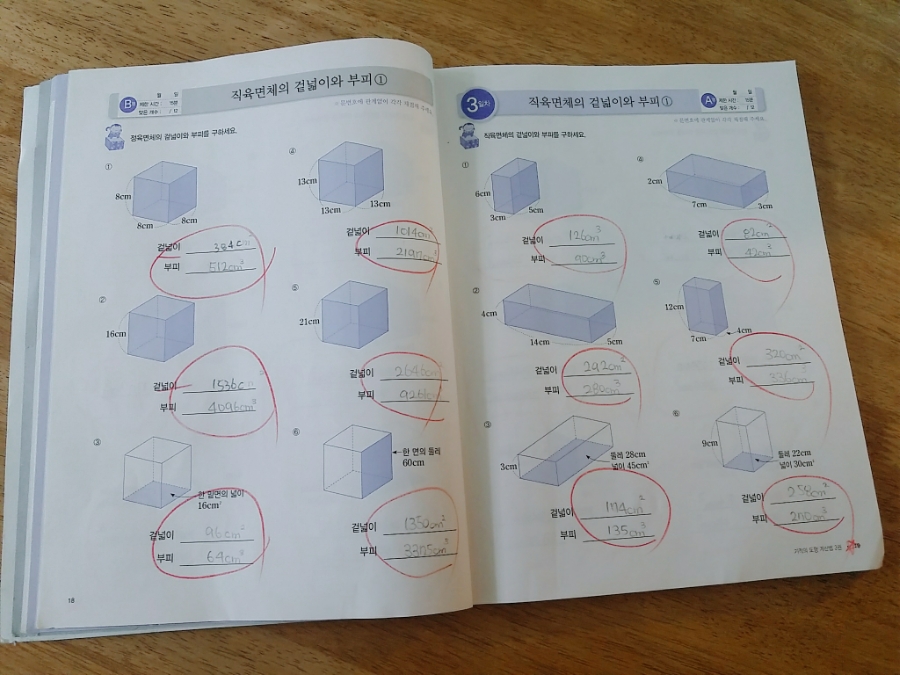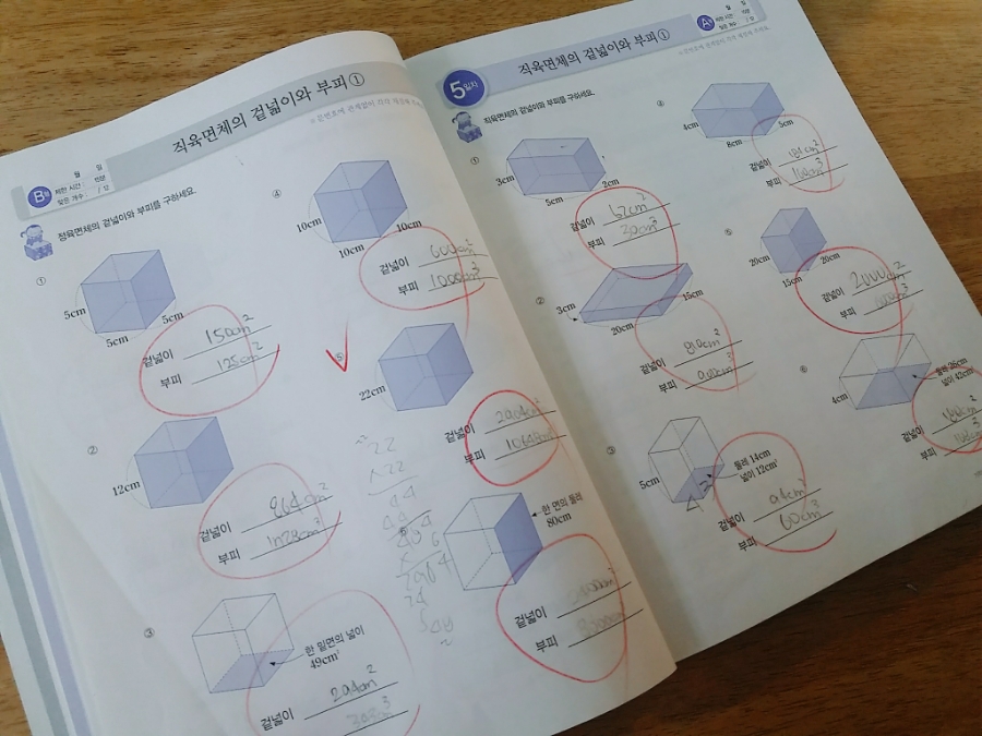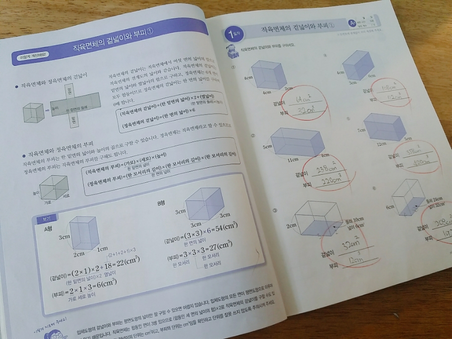 겉넓이를 구하면서 연산 실수는 몇 번 있었지만 크게 어려워하지는 않았어요