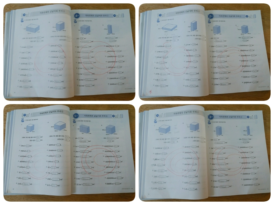 뒷장으로 넘기니 한 문제만 맞고 나머지 3문제는 넓이는 맞는데 둘레가 죄다 틀렸더라고요