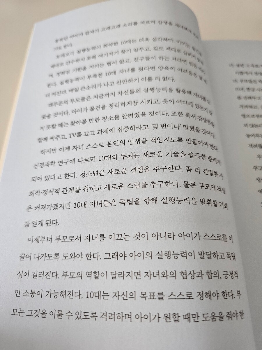 행동을 조절하고 목표를 정해서 실행하는 것, 해야 할 일과 하고 싶은 일 사이에서 균형을 잡는 것은 지능이 아니라 뇌의 기능이자 사고의 과정인 '실행 능력'이 있어야 가능한 것인데 실행 능력이 부족한 10대에게는 일상생활이 전쟁일 수밖에 없습니다.