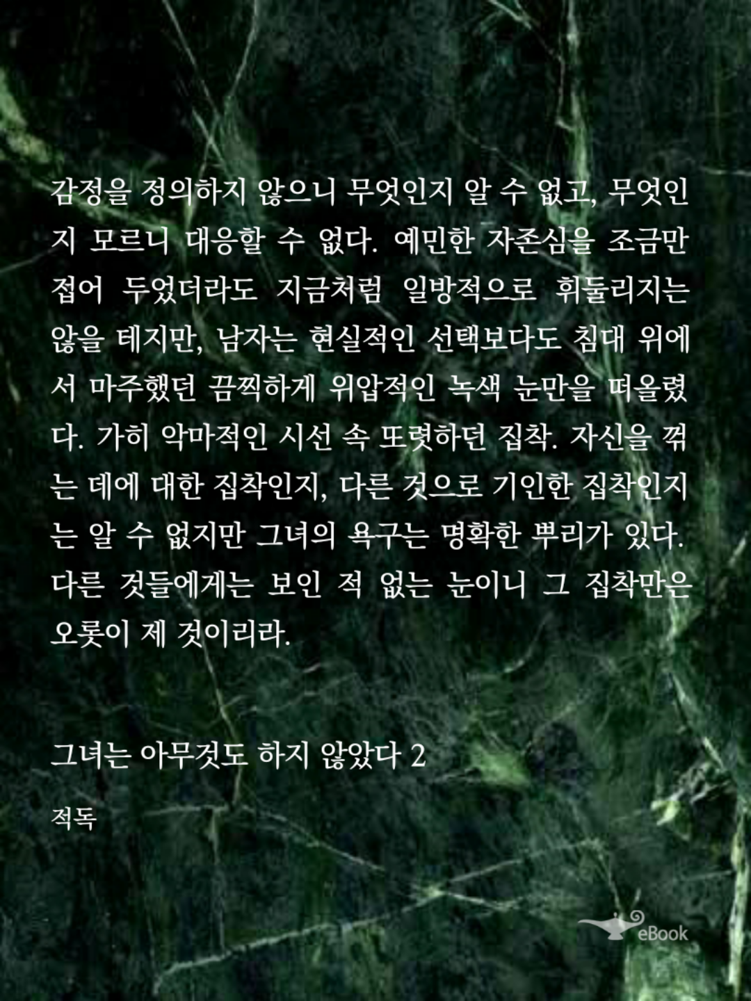 씬이 굉장히 자세하고 길어서 보는 재미는 있지만 장문이라 계속 읽다 보면 뒤에서는 지칩니다.  쓰다보니 스스로 분위기에 취한? 문장은 전체적으로 괜찮은데 전부 다 힘이 들어가 있어서 뺄 문장은 빼고 좀 더 다듬었으면 책 분위기랑 더 잘 어울렸을 것 같아요.