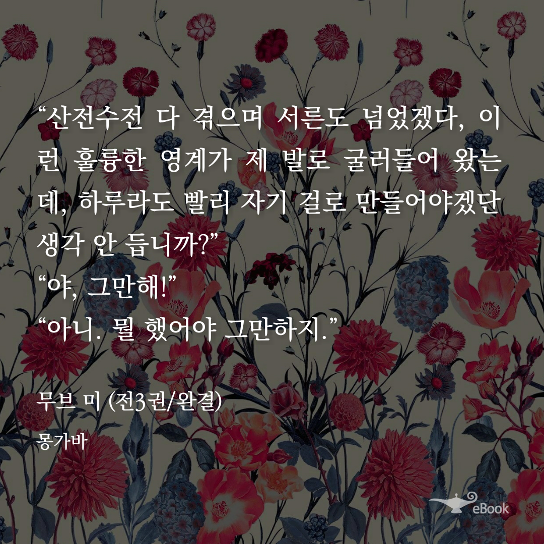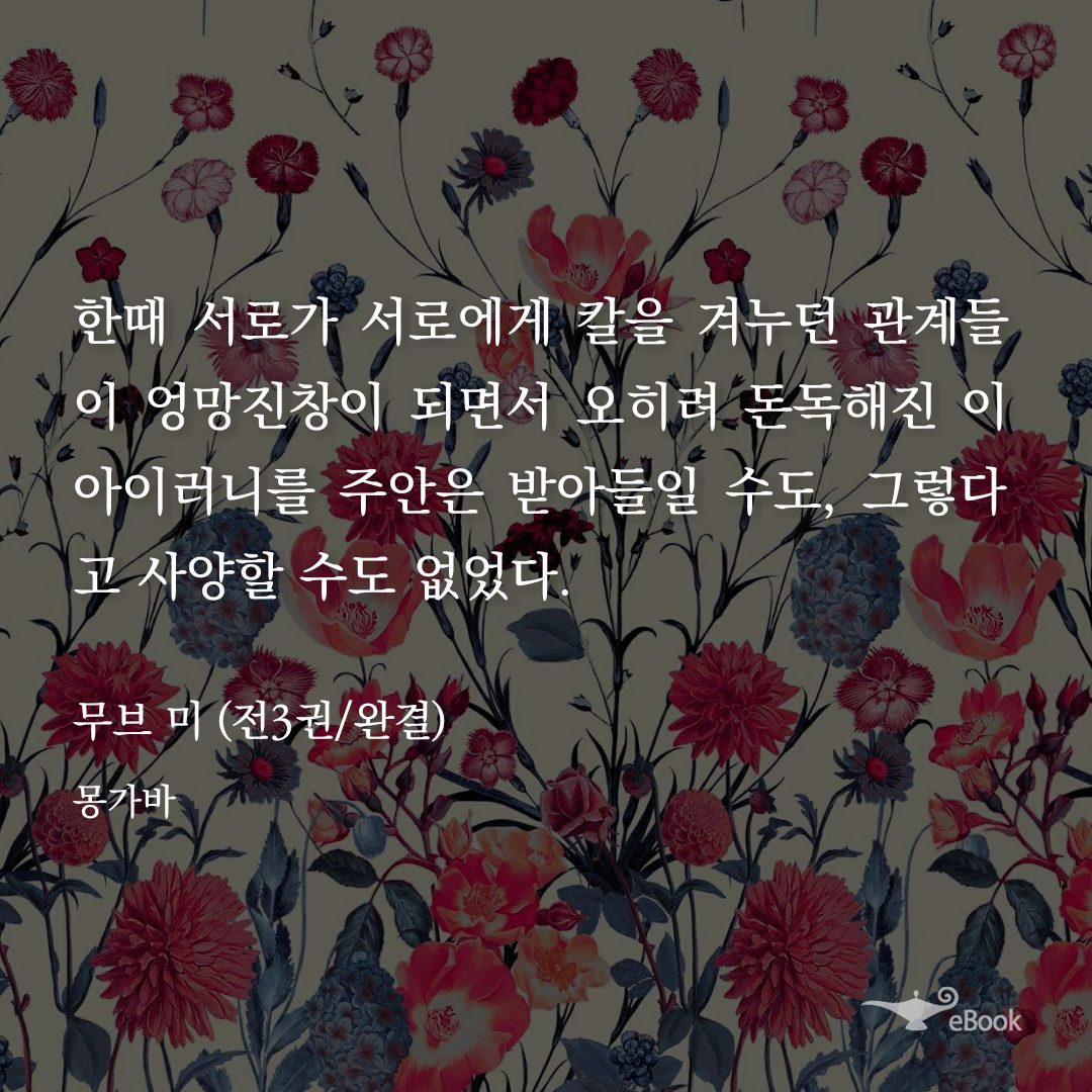 다만 연재 때 편집을 이북으로 그대로 내신 건 보기 진짜 힘드네요. 문장 2, 3 정도 나오면 문단이 바뀌어서 읽을 때 엄청 끊깁니다. 오탈자 거의 없고 필력도 좋으신데 왜 책을 이렇게 내셨는지......그리고 합본이라 로딩이 좀 걸리네요....