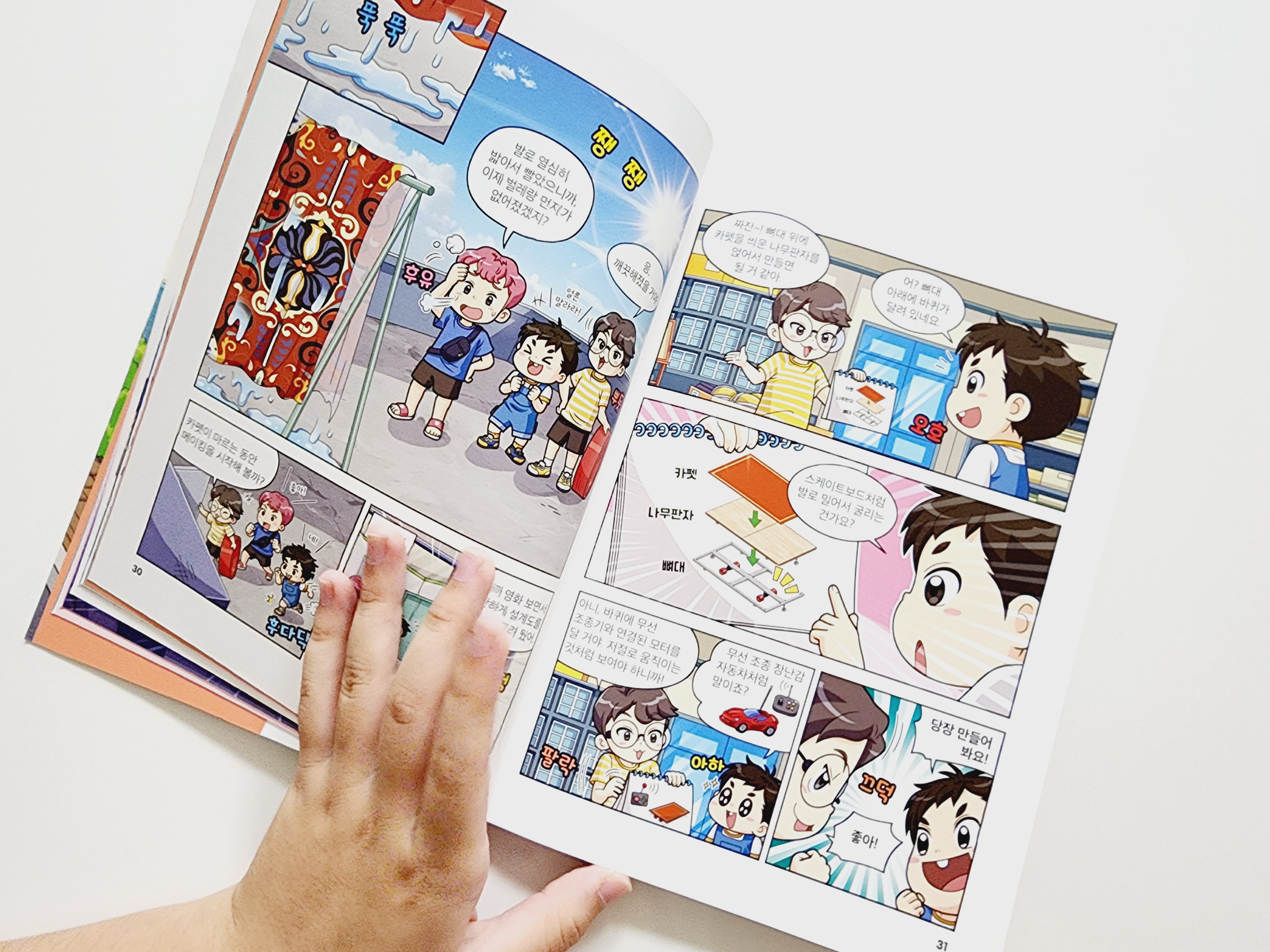 재밌는 스토리만화로 즐기면서 과학원리를 익힐 수 있는게 내일의 발명왕 책의 가장 큰 장점 인 것 같아요.