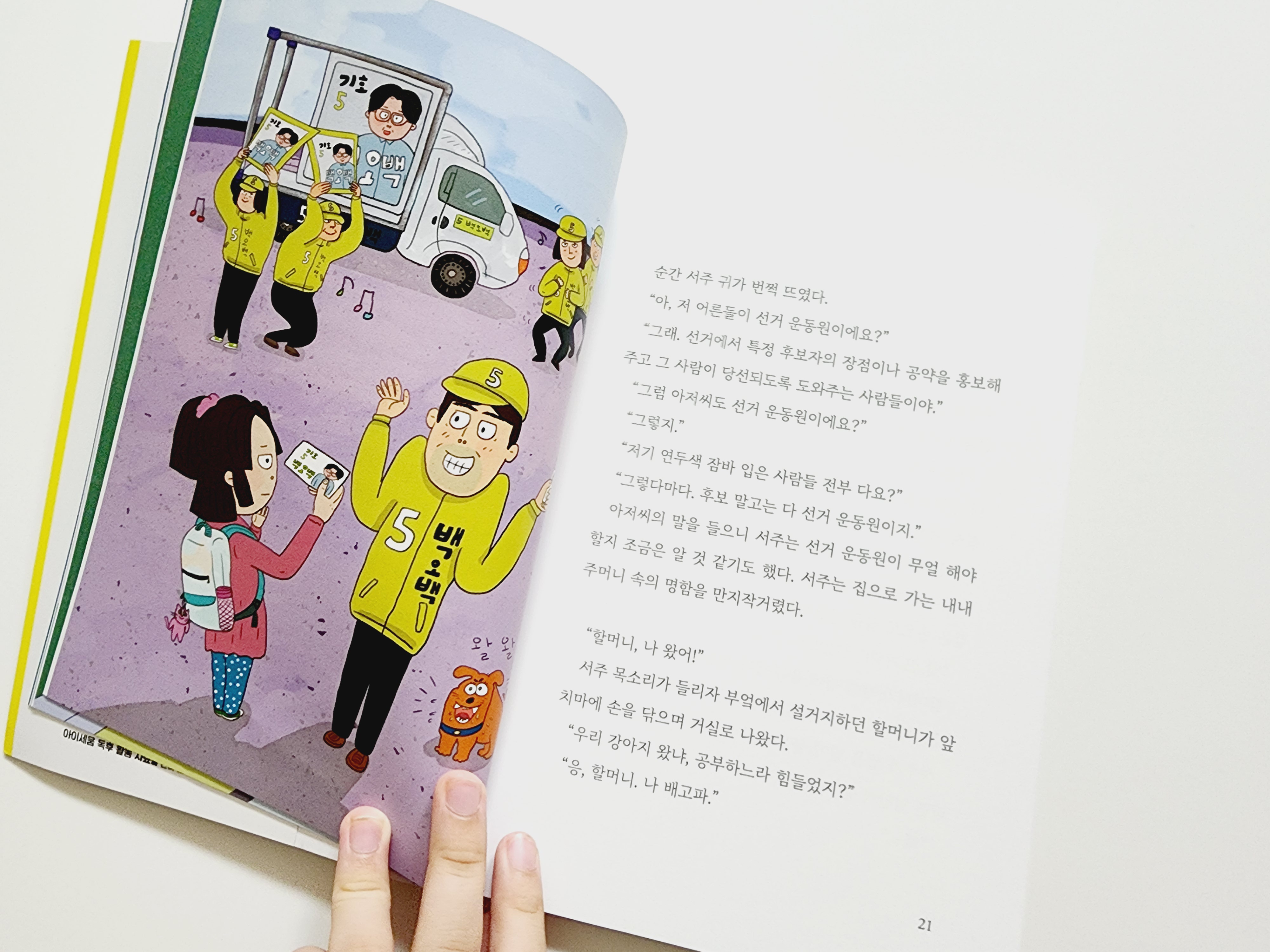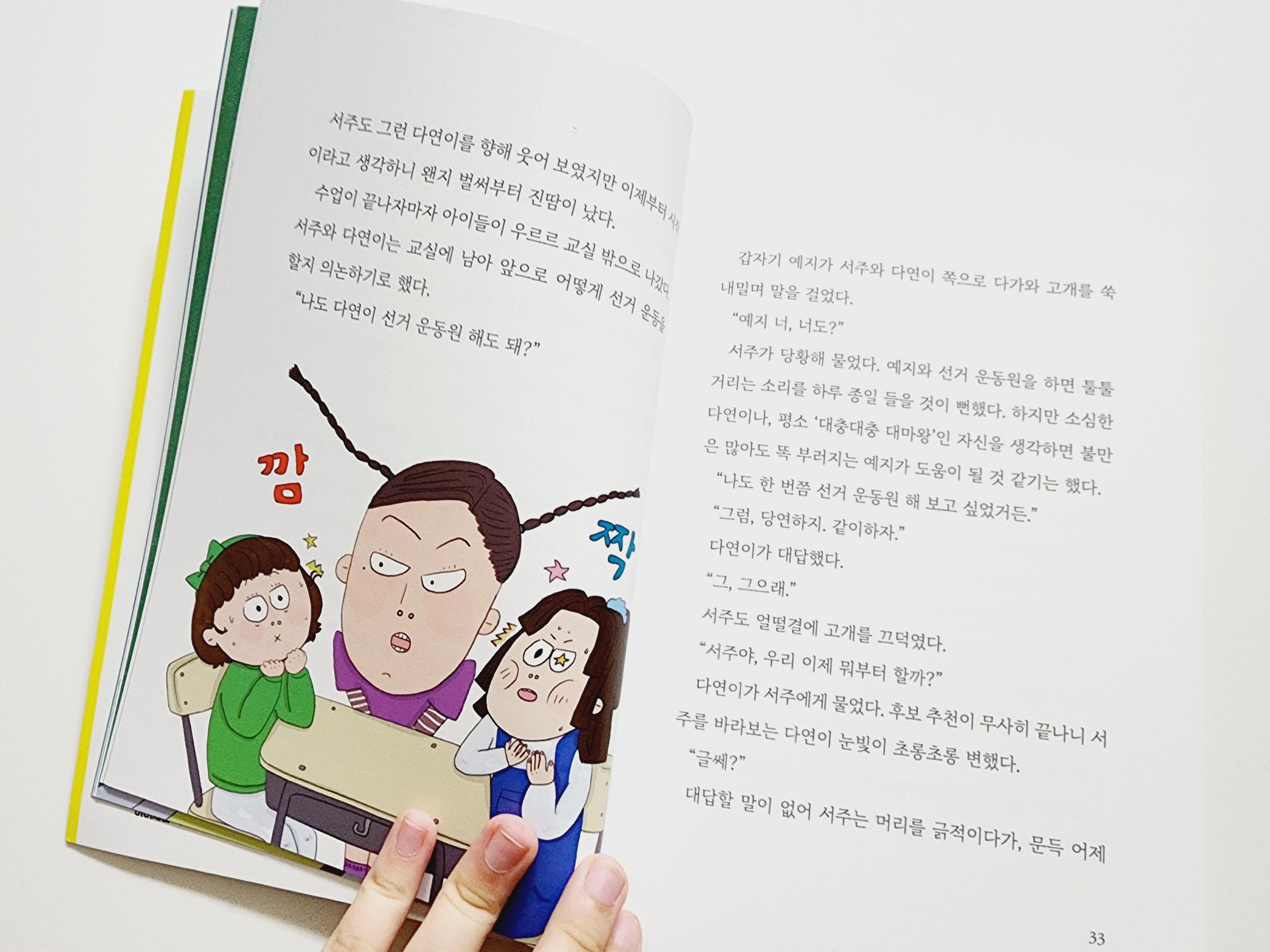 '세상에 이런 진흙탕 선거는 없었다' ㅎㅎ초등 학급 회장 선거를 앞두고 벌어지는 이야기 '진흙탕 선거'공부 잘하는 후보, 운동 잘하는 후보, 똑부러지는 후보, 약속을 지킬 줄 아는 후보!각양각색 4명의 학급회장 후보들의 선거경쟁이 펼쳐지는데, 선거에 나가고 싶어하는 다연이를 위해 선거운동원을 하고 싶다는 서주와 예지!선거를 무사히 마칠 수 있을까요?학급회장 선거에 앞서 선거공략과 선거운동에 대해 의견이 나뉘는 상황 속에서 상대 후보들의 무분별한 가짜뉴스 또한 쏟아지는 상황이 펼쳐지게 되요. 요즘 가짜뉴스 정말 문제죠. 어른들도 어떤게 가짜뉴스인지 알기 힘든데, 아이들은 얼마나 혼란스러울까요?선거의 진정한 의미와 내가 할 수 있는 '한표의 의미'를 알게 해주는 진흙탕 선거!!아이들이 꼭 읽어보면 좋은 학급선거동화예요!! ㅎ*출판사로부터 도서를 제공받아 작성한 후기입니다*