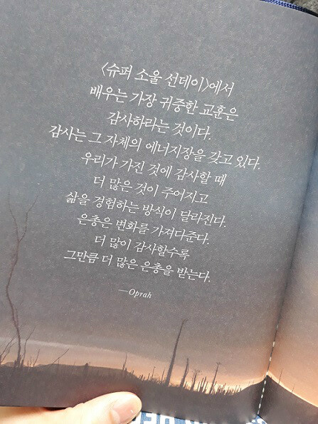 오프라 윈프리라는 인물의 아픈 과거는 너무 유명하다. 물론 모르는 사람도 있겠지만, 특히 이 책의 내용은 그 과거를 몰라도 되는 내용인데, 그 이유는 이 책이 오프라 윈프리 자신의 이야기보다는 그녀와 대화나눈 사람들의 이야기가 주를 이루기 때문이다.