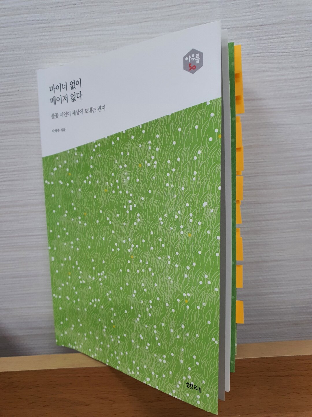 샘터출판사의 ‘다음 세대를 생각하는 인문교양시리즈’ <아우름50>으로 나온 나태주 시인의 에세이 <마이너 없이 메이저 없다> 역시 풀꽃시인의 주옥같은 인생의 해답이 들어있다.