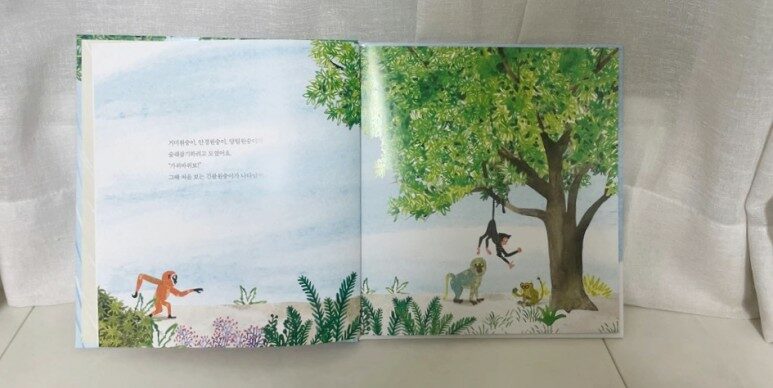 긴팔원숭이가 이사를 왔어요. 그리고 동네에 사는 다른 원숭이 친구들과 날마다 재미있게 술래잡기를 합니다
